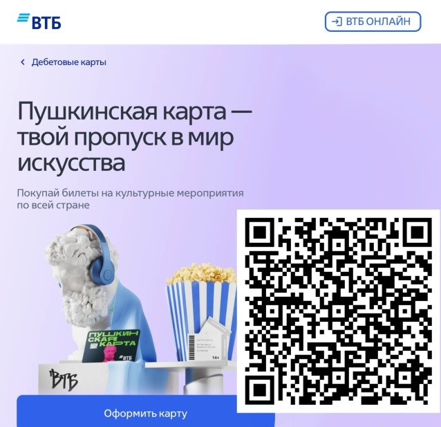 Это возможно с «Пушкинской картой». Государственная программа для молодежи от 14 до 22 лет. Специальная банковская карта, на которую государство ежегодно зачисляет 5 тысяч рублей. Как ее получить? Зарегистрируйтесь — создайте или подтвердите учетную запись на портале «Госуслуги» https://www.gosuslugi.ru/ Установите приложение — скачайте «Госуслуги Культура» в удобном магазине приложений https://culture.gosuslugi.ru/ Выпустите карту — выпуск виртуальной карты займет пару минут, после чего вы получите уведомление Оплачивайте с помощью средств на карте билеты и веселитесь Если у вас есть ВТБ банк, то карта автоматически перешла туда. Печать PDF Навигация по записям «Театральная весна 2026» на базе МБОУ СОШ №4 р.п. Линево